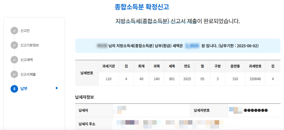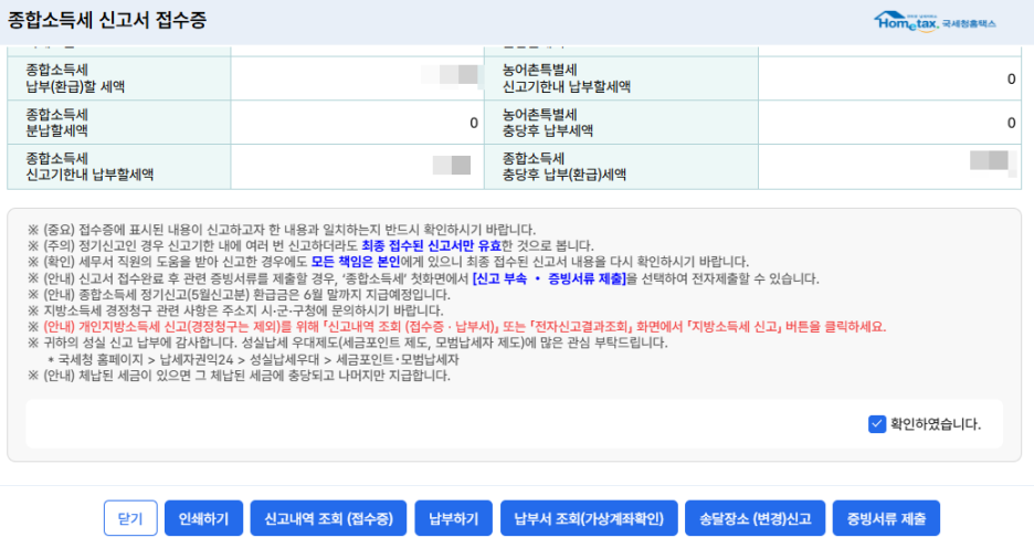 - 신고서를 제출하고 세액을 납부합니다.