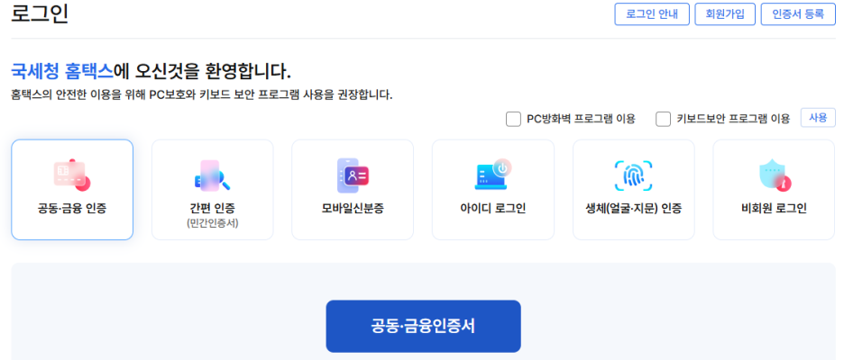 2. 공인인증서 로그인을 합니다.