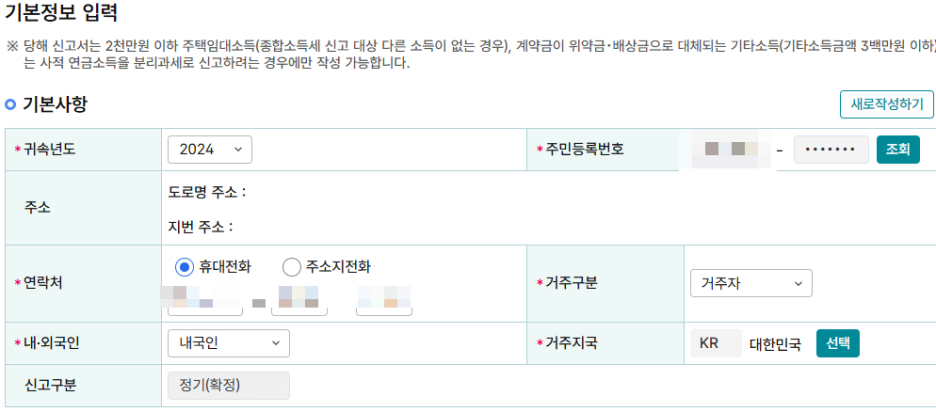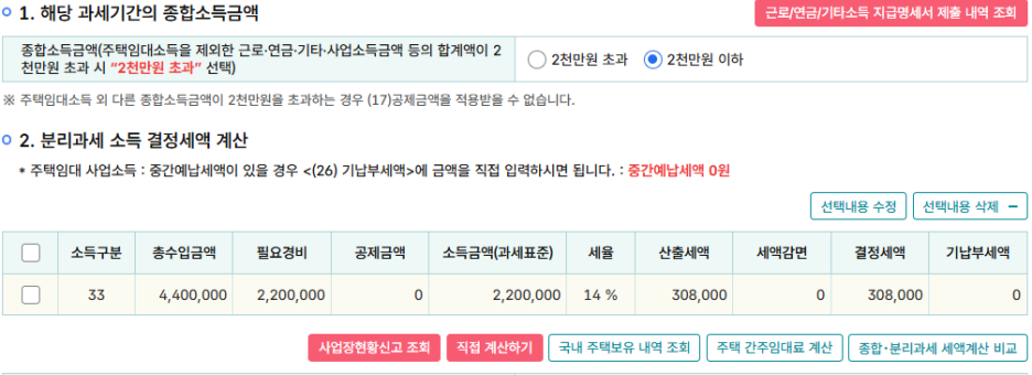 - '분리과세 주택임대소득' 항목을 선택합니다.